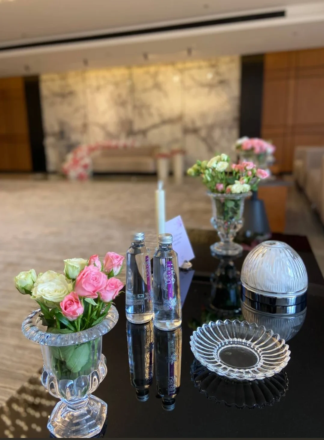 (فازة ورد - صحن مكسرات - علبه مناديل - شمعه - مويه)